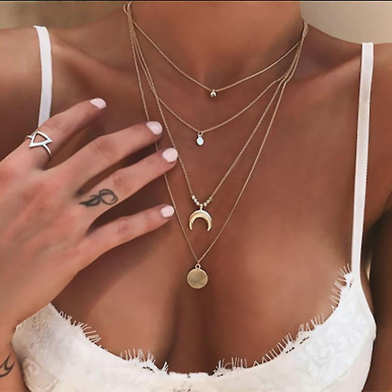 Multilayer Necklace Moon Round Coin Pendant Alloy Layered Neck Choker Jewelry Gift For Women Walmart Canada